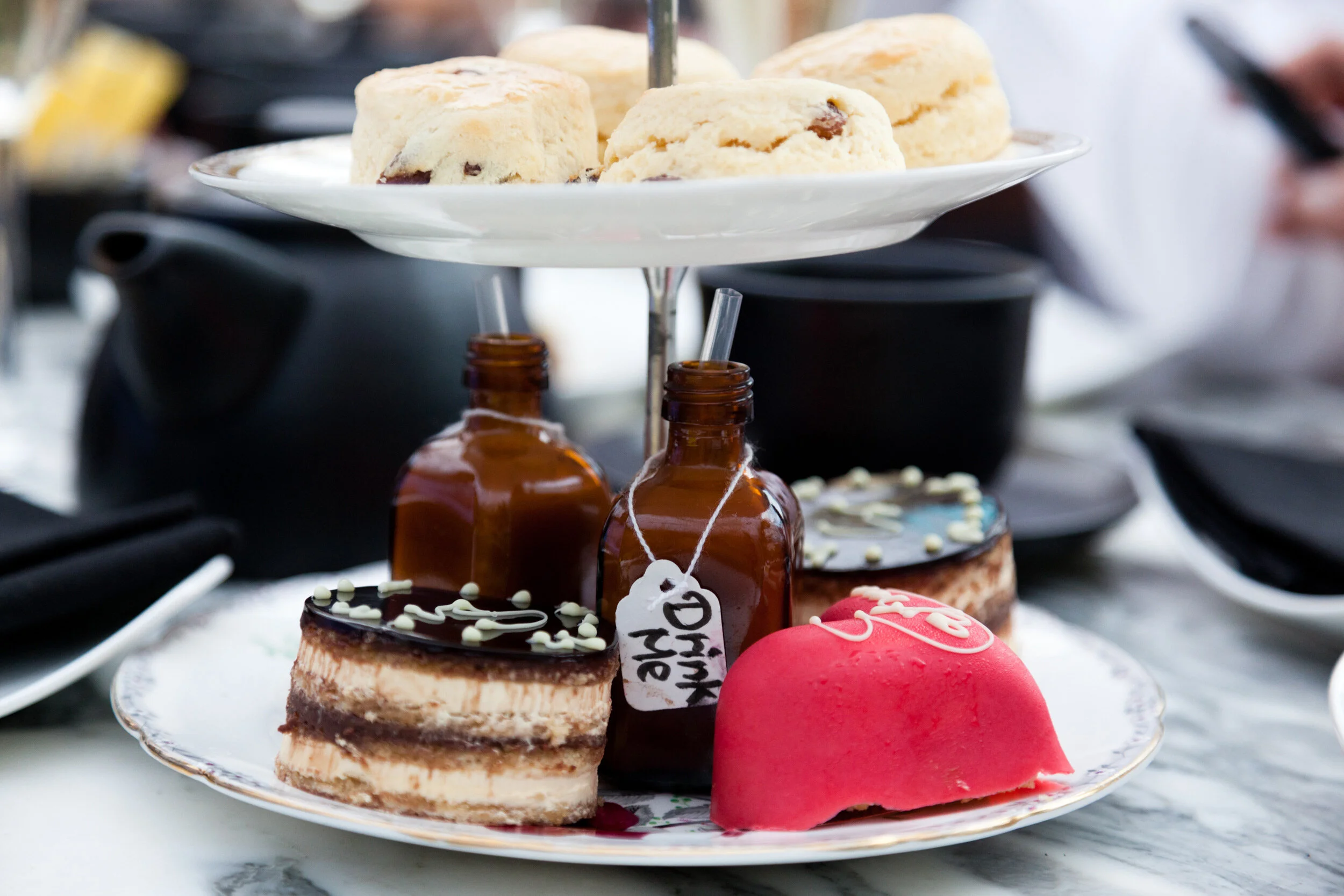 After the ceremony, they attended a gorgeous high tea in the gorgeous courtyard of the St. Martin’s Lane Hotel, where a special Alice in Wonderland inspired love potion service awaited them.